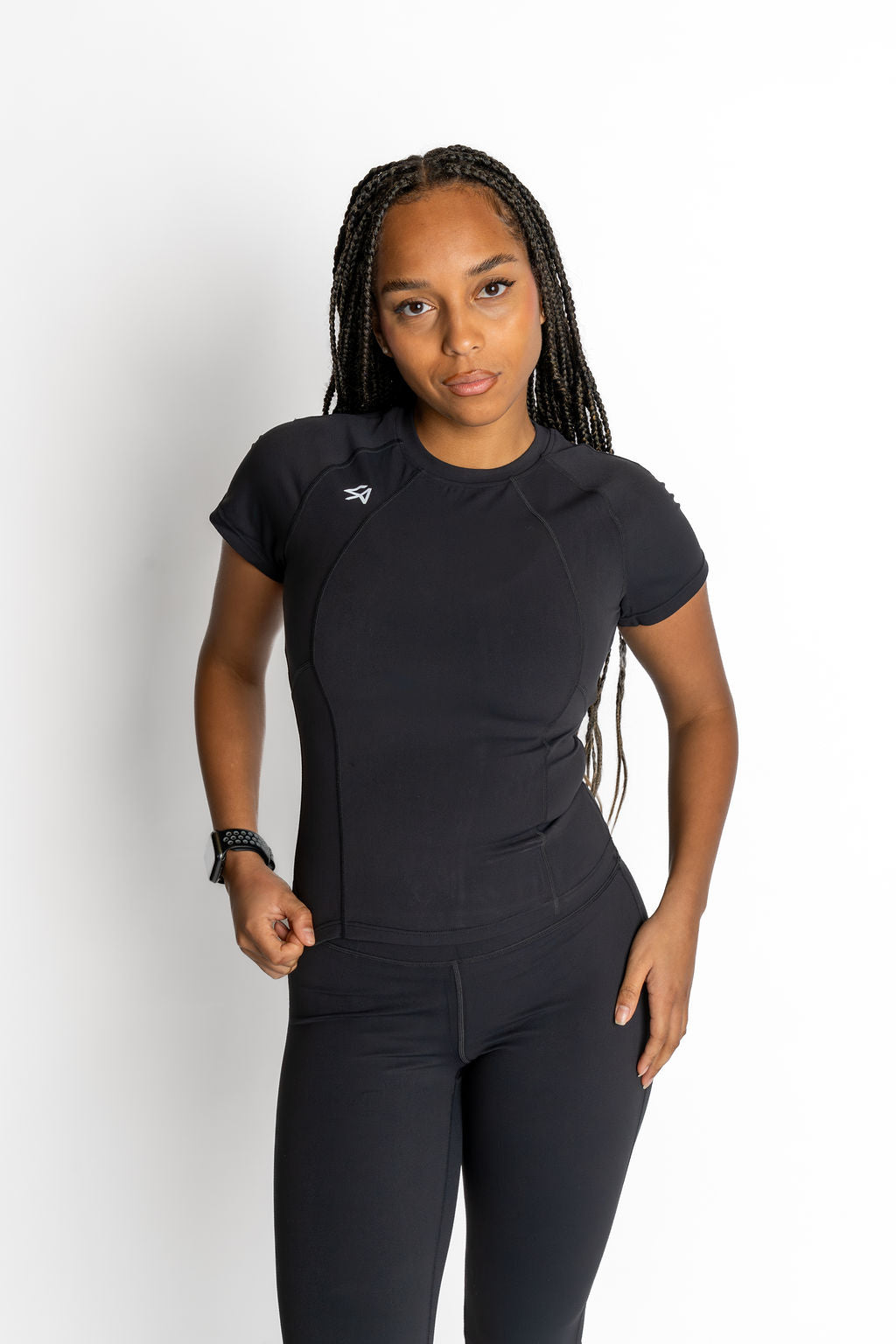 The streamlined short-sleeve design offers a clean, modern look that transitions seamlessly from workout to everyday wear. Lightweight and breathable, the fabric keeps you comfortable while maintaining its shape, wear after wear.